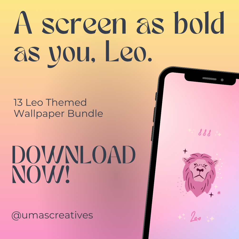 This pack includes 13 Leo Zodiac inspired wallpapers supporting both iOS and Android devices. These beautiful images will refresh your phone with a subtle, yet creative touch! I've used a series of different graphics with fonts so this pack is totally flexible to your personal aesthetic!